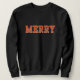 Spread some holiday cheer with this Christmas sweater featuring a bold "MERRY" in college varsity style typography in orange. This cosy style is perfect for ugly sweater parties or casual holiday gatherings throughout the festive season.