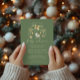 Green and beige watercolor ornament design winter baby shower invitation.