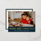 Merry Little Christmas Blue Gold Modern Photo Foil Holiday Postcard