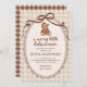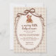 Celebrate the mom to be with this Merry Little Teddy Bear Winter Christmas Baby Shower Invitation. Featuring a sweet watercolor teddy bear in a Santa hat, soft neutral brown gingham background, and festive hand drawn bow accents, this cozy and whimsical holiday design is perfect for a winter or Christmas themed baby shower. This editable template makes it simple to personalize and share your joyful seasonal celebration.