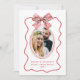 Merry Married Red Wavy Frame Bow Photo Christmas Holiday Card