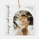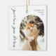 Commemorate your first holiday season as a married couple with a "Merry & Married" ceramic ornament featuring your wedding photo. This beautifully designed ornament showcases your cherished image, surrounded by festive accents that reflect the joy of your new journey together. The elegant text adds a personal touch, making it a heartfelt keepsake for your tree. Perfect for celebrating love and unity, this ornament will be a treasured reminder of your special day and the joy of the holiday season for years to come.