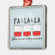 A play on the lyric "follow me in merry measure" from the Christmas carol "Deck the Halls." Teachers, chemists, biologists and lab techs, this is for you! Text reads, "Fa la la la la, follow me in merry measure;" and design features three graduated beakers and a snowflake.