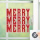 Add festive cheer to your windows with this bold Merry Merry Merry Window Cling. Featuring bright, modern typography in holiday colours, it’s easy to apply, remove, and reuse. A fun, stylish way to spread Christmas spirit in your home, office, or store—no tape or mess required!