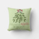 Merry Mistletoe with white berries tied up in a red ribbon nestled atop a doorway awaiting those to stand underneath. A lovely and simple design that depicts a simple and classic Christmas element. A wonderful design for any holiday occasion.