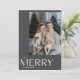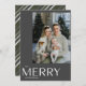 This year, let your friends and family know you care with the Merry Modern Grey Photo Christmas card. Not only is it stylish and up-to-date, but it has enough space for you to include your favourite memory from the past year. The design is clean and minimal yet still festive, featuring chic typography that welcomes viewers with the word 'merry' and a personalised message with your name and the year. All of that sits on a charming, grey background that ties the whole look together. And for an added touch of chic, the back of the card features a neutral grey and sage green stripe pattern.