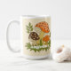 A fun design with funky mushrooms. A throwback design with avocado green, brown and orange shades.