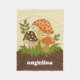 A fun design with funky mushrooms. A throwback design with avocado green, brown and orange shades.