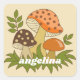 A fun design with funky mushrooms. A throwback design with avocado green, brown and orange shades.