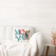 These 16" x 16" Christmas holiday throw pillows feature a placeholder for your favourite photo, name and year. The letters in the word, Merry are large and in different colours of teal and red on an ivory background.