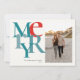 Merry Photo Simple Flat Teal Red Holiday Card