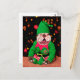 A cute and funny little baby pit bull puppy dog dressed as an elf in front of a Christmas tree. Great holiday greetings for the pet lovers, especially the pitbull fans and rescues.