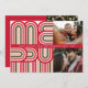 This holiday card features a unique, retro-inspired red and green striped MERRY greeting with two customisable photos. The back has two additional photos and a spot for a longer holiday message.