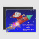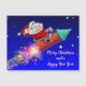 A merry Santa Claus riding a fireworks rocket on a starry midwinter night, with the text Merry Christmas And A Happy New Year
