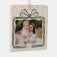 Merry Script Elegant Christmas Bow Photo Keepsake Ceramic Ornament