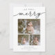 Share holiday greetings with these simple and chic Christmas photo cards featuring three of your favourite photos (1 landscape, 2 square) arranged in a rectangular collage layout. "So Very Merry" appears at the top in an elegant mix of block and script lettering. Personalise with your custom holiday greeting, name(s) and the year along the bottom. Cards reverse to a rustic buffalo check plaid pattern.