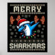Merry Sharkmas Shark Christma Ugly Xmas Kids Shark Poster