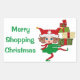 This is a cute sticker to use throughout the Holiday Season! It features a colourful image of a red and green clad woman elf carrying a stack of brightly wrapped Christmas gifts. The text in bright green says Merry Shopping Christmas. Cute! *Thanks to Real Deal Clipart for the clipart used to create this design.