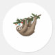Merry Sloth on Christmas Tree Branch with Ornament Classic Round Sticker