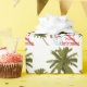Cool, snowman under Texas palm trees, is featured on this Christmas, gift wrap.