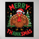 Merry Thanksmas Turkey Santa Hat Christmas Tree Fa Poster