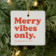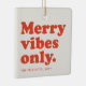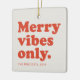 Merry vibes only this holiday season! Celebrate all good things with this fun retro-styled red and off-white ornament featuring your photo and custom text. The throwback type reads "merry vibes only" and it also has room for name and year or message. The fun shades of retro red and off-white are a perfect vintage touch too. A great way to celebrate the year that was!