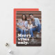 Send fun retro holiday cheer with this one-photo card that features a play on "good vibes only" with a more festive "merry vibes only." The white text sits on a single veritcal photo with plenty of room for custom text and names. The back is a fun vivid retro red with a distressed texture. Also available as a digital Christmas card download.