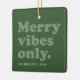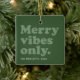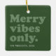 Merry vibes only this holiday season! Celebrate all good things with this fun retro-styled hunter green ornament featuring your photo and custom text. The throwback type reads "merry vibes only" and it also has room for name and year or message. The fun shades of green on green are a perfect vintage touch too. A great way to celebrate the year that was!
