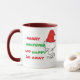 Funny holiday mug with "Merry Whatever & Happy Go Away" sarcastic Christmas quote.