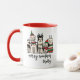Merry Woofmas Cute Dogs Christmas Custom Name Mug features a fun modern cartoon dogs with your personalised name below the text "Merry Woofmas" in modern calligraphy script. Perfect for Christmas and the holidays as gifts for family and friends, dog lovers, dod mum, dog dad, dog sitter and more. Personalise by editing the text in the text box provided. Created by Evco Studio www.zazzle.com/store/evcostudio