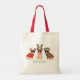 Cute illustration of three Pug dogs dressed in Christmas attire.