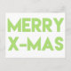 Merry X-Mas, Modern Green Typography Christmas Holiday Postcard