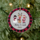 This funny and cute Christmas ornament has a snowman, reindeer and Santa Claus wearing masks. There are buffalo plaid patterns, and lovely red, white, black, and tan colours. You can customise it with the year. It has buffalo plaid around the front and on the back.