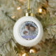 Merry Xmas Family Photo Name Light Blue Purple Ceramic Ball Christmas Ornament
