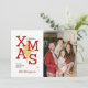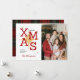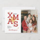 "Celebrate the season in style with this elegant 'Merry Xmas' holiday card. Featuring a bold 'XMAS' layout with a modern twist, the design places emphasis on large, classic serif lettering in deep red, accented by a radiant gold starburst for a touch of holiday magic. The right side showcases a single family photo framed beautifully against the minimalist white background, adding a warm, personal touch to your greeting. On the back, a rich, festive red plaid pattern brings traditional charm and cosy holiday vibes, making this card a perfect blend of contemporary and classic Christmas elements. Personalise with your family name for a custom, heartfelt holiday greeting." Thank you for visiting.