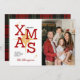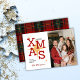 Merry xmas modern 1 family photo cute red plaid holiday card