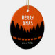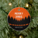 Christmas design in red, featuring a retro style forest with pine trees and snow.
