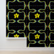 Elevate your living space with this eye-catching wallpaper featuring a mesmerising pattern of abstract, wavy lines and cheerful yellow flowers. Set against a bold black background, the design incorporates a playful mix of rainbow-coloured outlines that create a captivating visual effect. Perfect for adding a touch of modern art and lively colour to any room, this wallpaper is both stylish and unique.