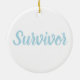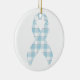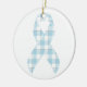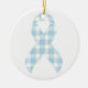 Mesothelioma Awareness Plaid Light Blue Ribbon Ceramic Ornament