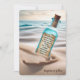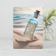 Vintage note in a glass bottle on a beach in sand for a wedding invite.