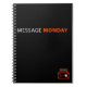 Message Monday Black Spiral Notebook with Message Monday and logo in original colour.