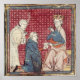 French School's F.117r Messengers telling Charlemagne of the victory over the Saracens, from the Grandes Chroniques de France, 1375-79 located at the Bibliotheque Municipale, Castres, France. The F.117r Messengers telling Charlemagne of the victory over the Saracens, from the Grandes Chroniques de France, 1375-79 was created around the 14th century.