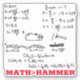 Fun sticker for your luggage, electronical doohickeys, ride, bottles and work or school supplies, featuring a messy math equation of some kind featuring a hammer and nail and a nerdy quote at the bottom, perfect for your little arithmetic geek who prefers totals to tools.