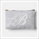 This small pouch features a messy white scripted monogram on soft silver grey grunge.