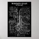This poster contains a metabolic circuit with detail pathway in the cell including the prominent pathways such as Krebs cycle, Glycolysis, b-oxidation in white connections like a electronic circuit with black background. Cool poster for biology students or for keeping in classrooms in schools.
