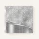 The metallic silver and glitter background of this design is divided horizontally by a soft wave of twisted metal that gives this notebook an aura of luxury. This design works well for any professional: event coordinators, organizers, financial consultants, attorneys, estheticians, etc; anyone who wants a folder with eye-catching elegance. Add your personal contact information on the reverse using the provided template. Search ID807 to see other products with this design, including matching business cards.