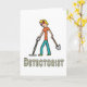 A metal detecting expert holds his detector, wears headphones and listens for the tell tale beep of hidden treasure. Carries shovel ready to dig down and discover new finds. Fun bright design for detectorists and fans of metal detecting.