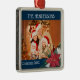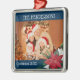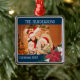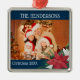 Poinsettia metal family photos Christmas ornament with year and stylish navy and white floral clip art.