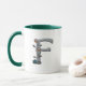 Initial F textured in dull, grey steel - decorated with metal flowers. The stems and leaves of the flowers look as if they are made of metal covered in a greenish mould, the flowers have petals of shiny copper with a polished steel centre. Added attraction is provided by a rusty metal watering can decorated with metal blooms with a metal snail crawling along the bottom. This unique monogram makes a great personalised gift for modern gardeners and naturelovers! Visit the shop to see more products featuring this design.