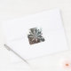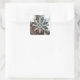 Silver metal looking sunflower or daisy flower unique graphic art design with 3d look chrome layers of petals. The flower is on a silver background. Square sticker is shown.